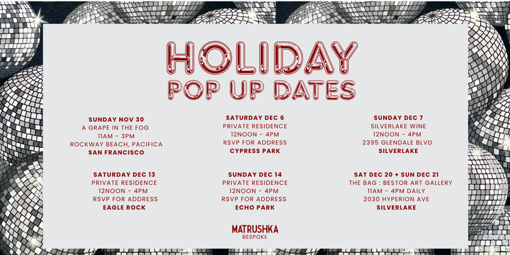 Let the disco balls drop—holiday pop-up season has begun. From Pacifica to Silverlake, we’re popping up with fresh styles, perfect gifts, and all the festive shine you need. Swing by in person or shop online… either way, you’ll sparkle.