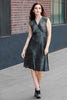 The Veronica Lake is one of Matrushka’s signature dresses. It’s a flattering cut that accentuates your curves in just the right way. With a 40’s inspired style, it hugs the body at the waist and drapes beautifully from the hips. This dress features a crossed V-neck, pleats under the bust and shoulders, and a V-crossover cut in back, completed with an adjustable tie closure to ensure a perfect fit. The Metallic Moonlight fabric has a satiny ribbed sheen for an elegant silhouette. Perfect for summer outings and special occasions.