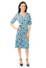 This wonderful Wrap Dress is done in the style of the legendary Diane von Furstenberg, creator of the iconic wrap dress in the 1970s. This classic pattern features 3/4 sleeves and an adjustable tie that allows you to wear it snug or loose. Wrap the sash around and tie a little off-center in front for a gorgeous look! Designed in a poly/lycra blend, the Blue Lava Wrap is perfect for casual and evening outings.