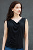 Add a delightful dash of sparkle to your wardrobe with this sleeveless cowl neck drape Black Sparkly Top. The black cotton/poly blend has small, delicate sparkles sprinkled throughout the fabric, offering dazzling charm and a flattering fit for all-day comfort.