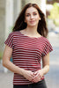 This Burgundy Striped Top is our classic T-shirt design, with dolman cap sleeves and round neckline, for easy style and a sporty look. In super soft knit, this top offers a relaxed fit, and it's super comfy for all day wear.
