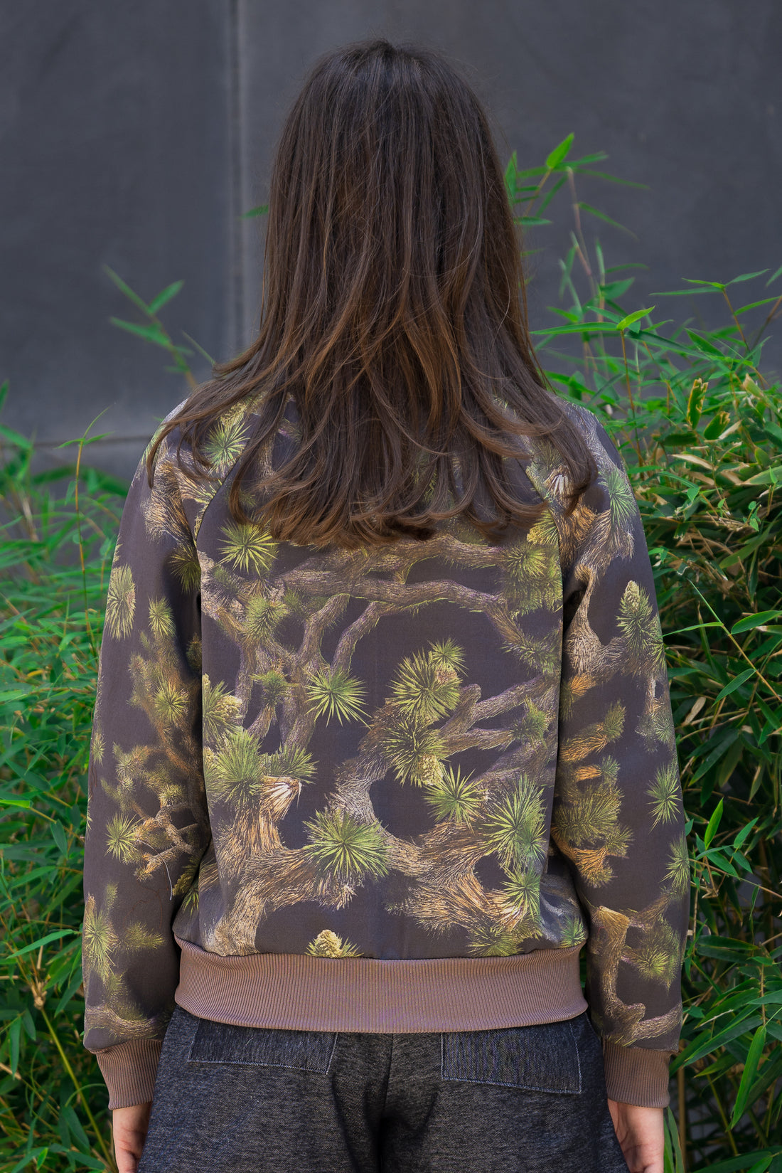 This Bomber Jacket features the Native California Joshua Tree, made from a sturdy- weight cotton, ideal for cooler temps. With contrasting tan ribbing, a lovely gold full-front zipper and pockets, of course, this Bomber Jacket is streetwear ready! And don't miss the smooth satin lining. You'll be warm and comfy, and effortlessly chic, in your native Cali Jacket. Â Â Â Â Â